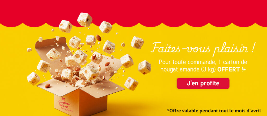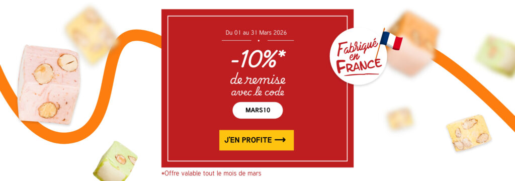 Nos nougats sont fabriqués artisanalement dans notre usine en France. Un savoir-faire local, une qualité maîtrisée, et un prix direct sans intermédiaire.